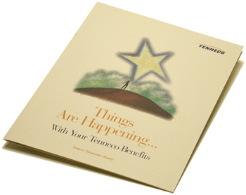 color brochure explaining benefits packages to employees.